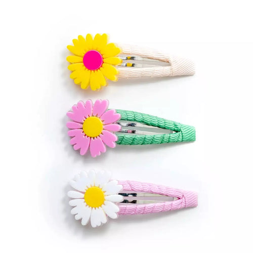 Lilies & Roses Daisy Yellow White Pink Fabric Covered Snap Clip