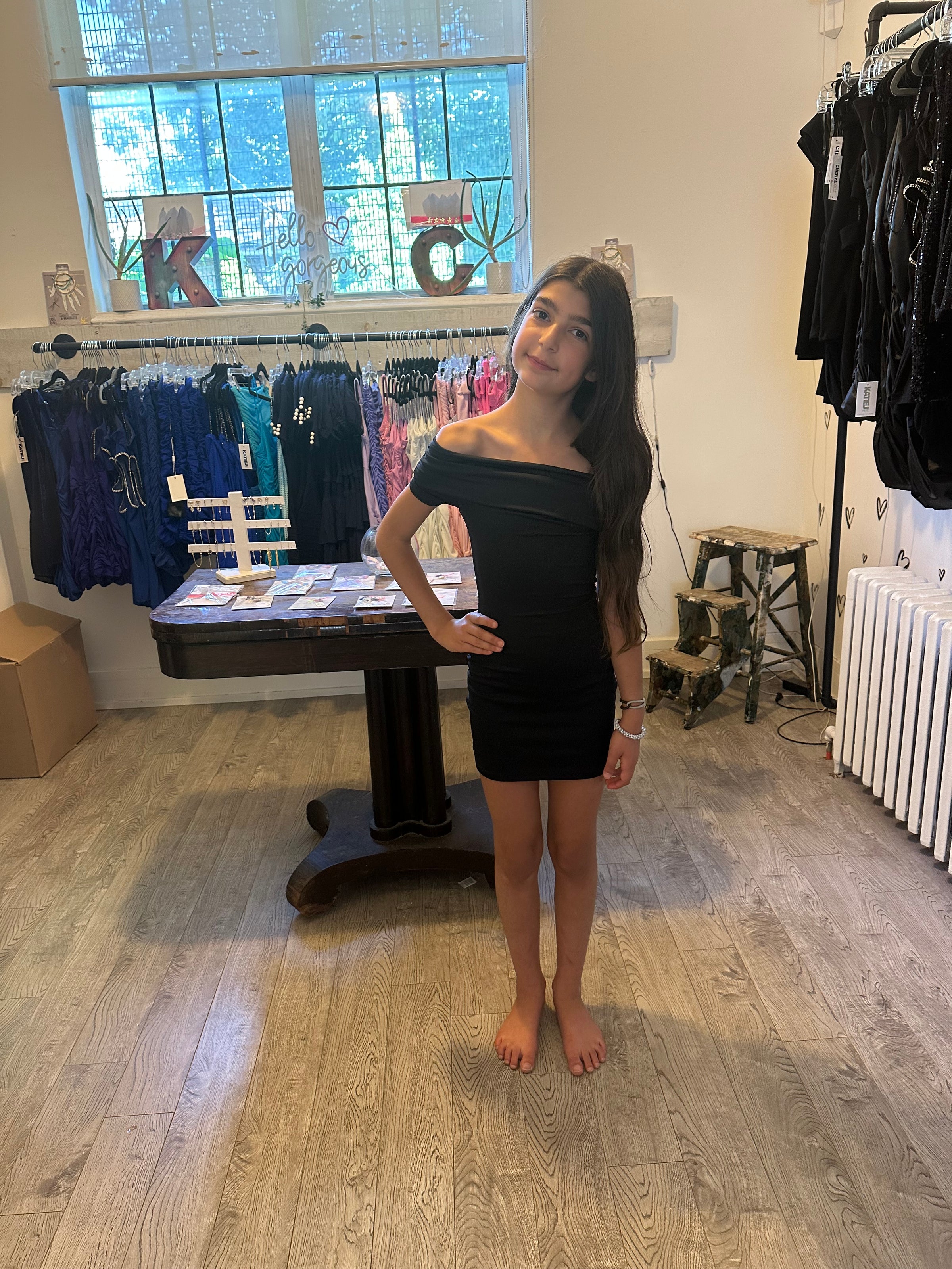 The Trisha Dress is a perfect fit! This off-the-shoulder dress hugs your body like a soft second skin, making you feel comfy and stylish all day. Sweet, fun, and totally adorable!