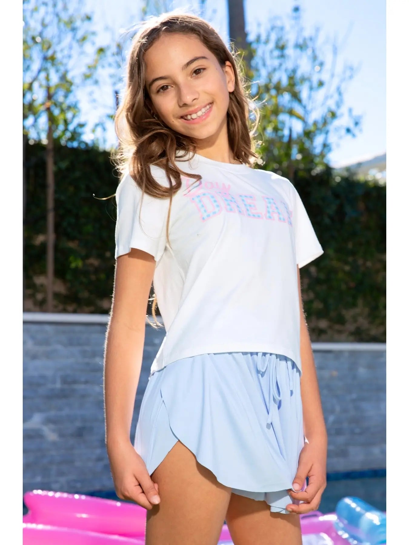 Made in our airy lightweight nylon fabric, this style features an adjustable tie and hidden tumble shorts underneath! This style is perfect for all activities and will keep you cool this summer. Trust us, you will want to stock up on colors!